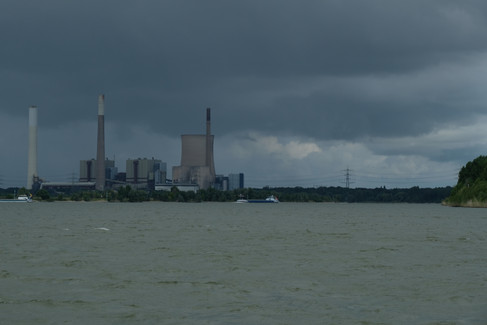 Gleich nach Verlassen des Yachthafens sahen wir auf der linken Rheinseite, gegenüber den Kasematten eine grosse Schafherde weiden, dies in einer Grossstadt. Nach Düsseldorf passierten wir KM 748, also 700 km ab Rheinfall und fuhren wieder an grünen Landschaften vorbei. Dies überraschte alle von uns. Wir erwarteten im Ruhrpott dichte Besiedelungen respektive Industrieanlagen oder Kraftwerke. Auch für die Fahrradfahrer, Wanderer und Hündeler ist es ein wahres Paradies. Eigentlich kann man ab Basel mit einigen Ausnahmen dem gesamten Rheinufer auf Radwegen entlangfahren. Wir fuhren zwar immer wieder an einzelnen grossen Industrieanlagen oder Kraftwerken vorbei, aber unmittelbar danach sahen wir wieder unglaublich schöne Naturparadiese, wieder mit Wasservögeln aller Art, darunter auch unzählige Gänseschwärme die sich wohl bereits auf den Flug in den Süden vorbereiten, wen wunderts, bei diesem Wetter. Nach gut einer Stunde Fahrzeit setzte zur Abwechslung auch der Regen kurz wieder ein, der sich dann mit einem Mix aus Wolken und kurzen Sonnenschein abwechselte.