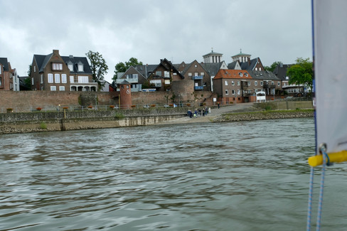 Seit Wesel fuhren wir praktisch nur an grünen Landstrichen vorbei, an deren Ufer heute viele Fischer zu sehen waren. Vom berüchtigten Ruhrpott mit den vielen Eisenhütten, Kraftwerken etc. war weit und breit nichts zu sehen. Ein ausrangiertes Kraftwerk am Rheinufer wurde in eine „Chilbi“ umfunktioniert, das könnte allenfalls eine Idee sein wie wir unsere Kühltürme in Zukunft verwenden könnten.